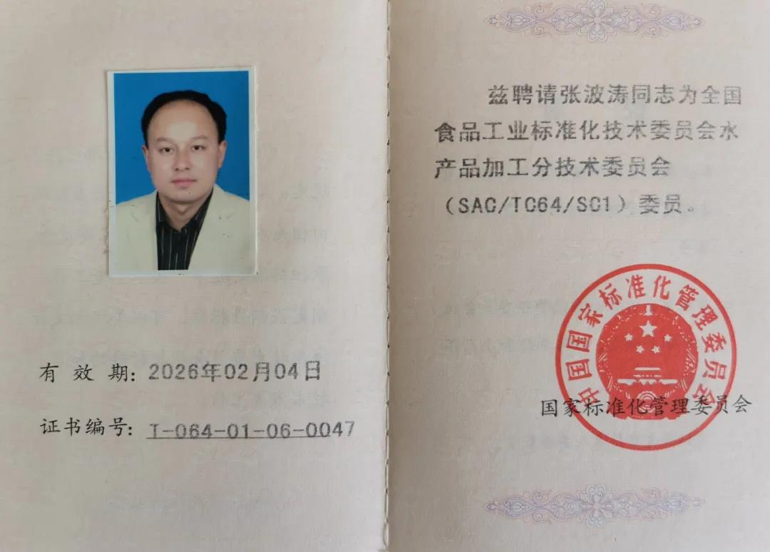 富煌三珍董事長張波濤獲聘全國水產(chǎn)標準委水產(chǎn)品加工分技委委員