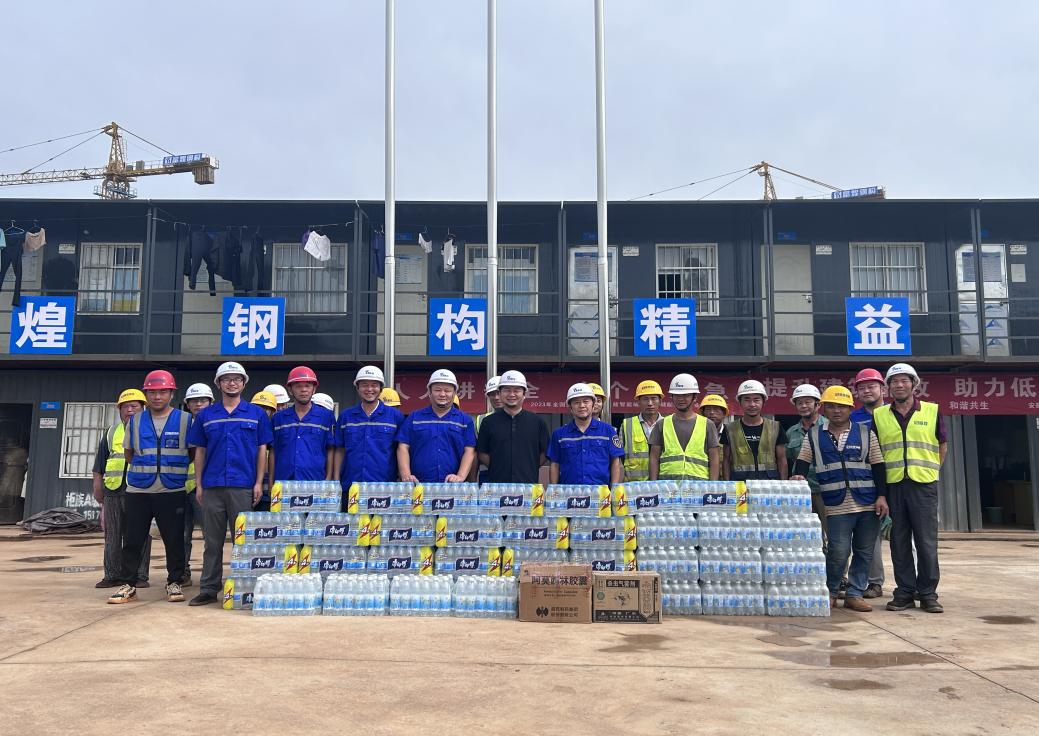 儀式結(jié)束后,汪浩波代表公司向工地一線(xiàn)工人表示慰問(wèn),并送去涼爽飲料和夏日大禮包,包含十滴水、藿香正氣液、仁丹等防暑降溫物品,同時(shí)宣揚(yáng)防暑降溫常識(shí),增加工人的自我防暑意識(shí),努力創(chuàng)建文明工地、健康工地。