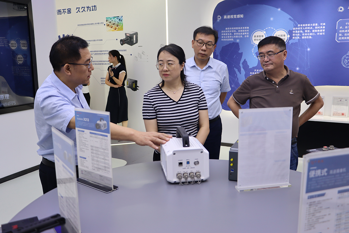 陳娟娟一行參觀了富煌新視覺展示中心,企業(yè)負(fù)責(zé)人詳細(xì)介紹了新視覺各產(chǎn)業(yè)發(fā)展、技術(shù)應(yīng)用領(lǐng)域和自主創(chuàng)新技術(shù)成果轉(zhuǎn)化的情況,并著重對(duì)芯片制造等方面的問題進(jìn)行了匯報(bào)。