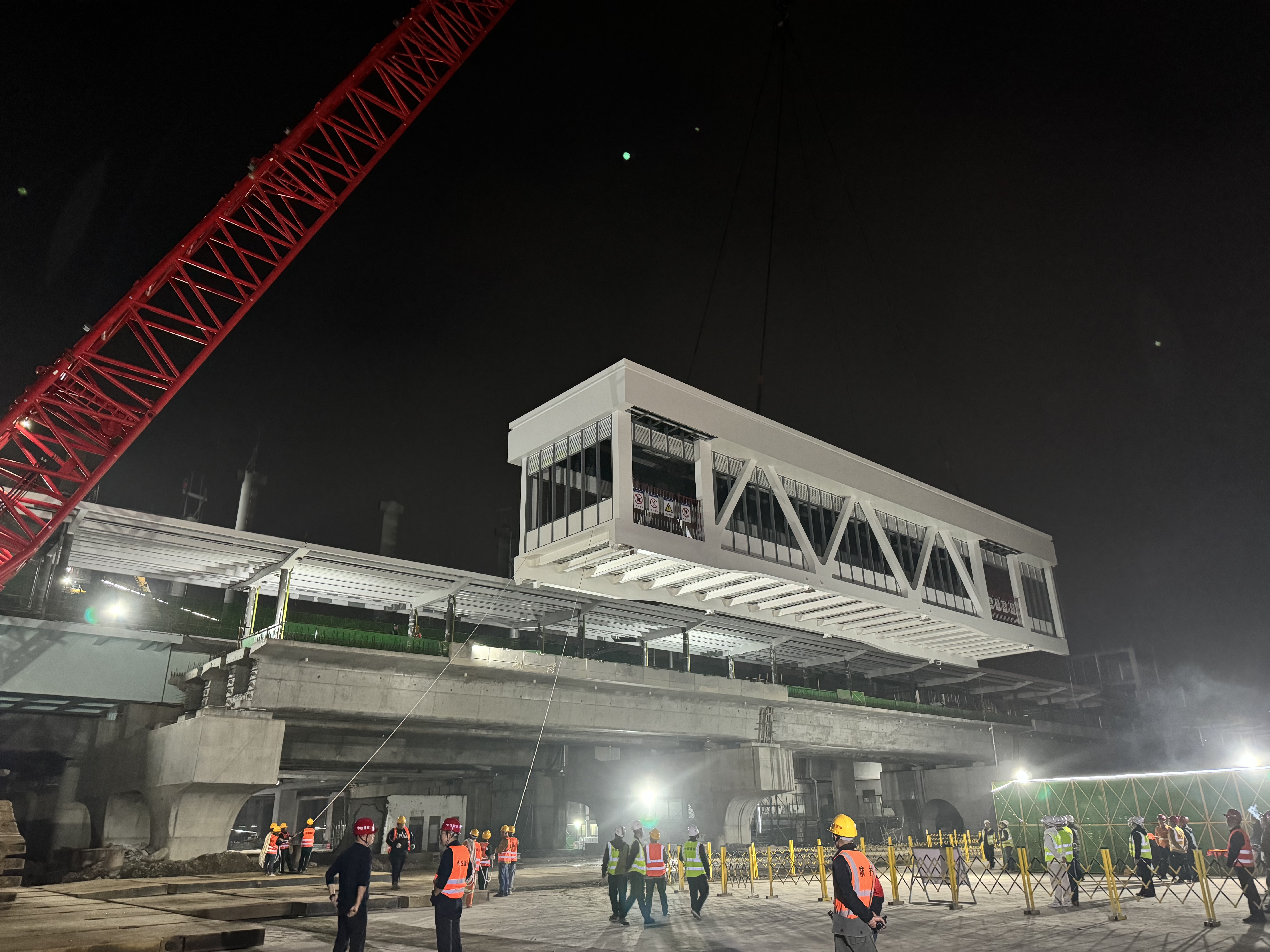 此次吊裝需要寧波工務段、寧波車務段、杭州樞紐指揮部、杭州維管段、房建公寓段、鐵四院、北京鐵研監(jiān)理等十多個相關單位,近五十多位負責人來吊裝現(xiàn)場指導、監(jiān)督、把關并應對突發(fā)情況,進行現(xiàn)場應急處理。在總包方的統(tǒng)籌安排、全盤把控下,在富煌鋼構各部門的大力支持下,在項目部管理人員的精細管理下,在一線工人的共同努力下,通過前期充分的準備,精準測量、模擬、分析,整個吊裝結束時間比應急處理要求的完成時間提前1個小時,得到了社會各界的一致好評。