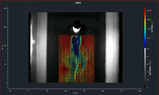 案例3:研究氣溶膠噴霧除塵系統(tǒng)的流場(氣流與液滴運動分布)對高粉塵環(huán)境下提升除塵效率、降低能耗、優(yōu)化設備設計及保障作業(yè)安全具有重要意義。千眼狼高頻PIV測量系統(tǒng)對氣溶膠噴霧除塵設備的流場進行可視化分析,研究液滴與粉塵顆粒的相互作用(如慣性碰撞、截留、擴散捕獲),有利于優(yōu)化液滴粒徑(通常20~200 μm效率最佳)和噴霧密度,提高捕獲率;其次,在高溫或高風速環(huán)境中,液滴可能未接觸粉塵即蒸發(fā)失效,PIV測量系統(tǒng)針對液滴初速度與粒徑優(yōu)化,平衡沉降時間與蒸發(fā)速率,可提供客觀數(shù)據(jù)支撐。
