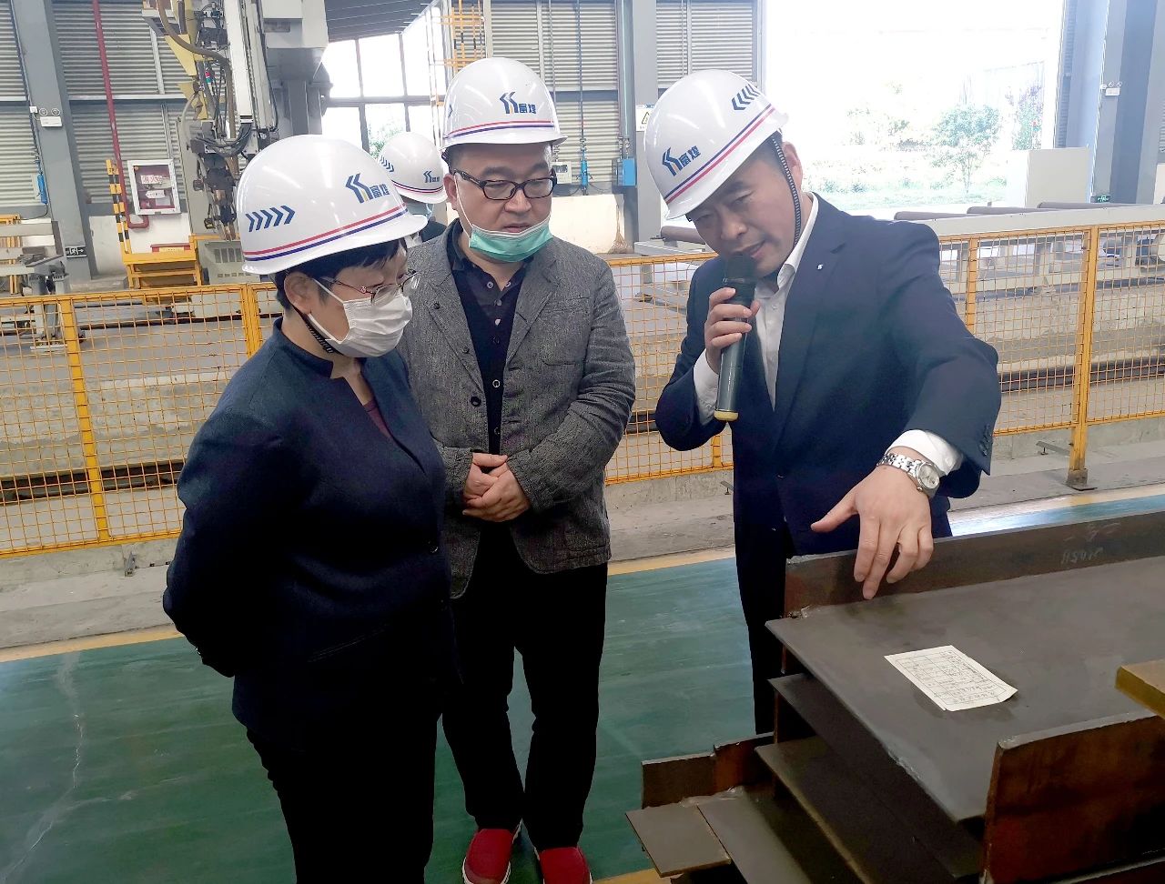 余強(qiáng)總工程師、項(xiàng)婷婷處長(zhǎng)重點(diǎn)參觀了富煌鋼構(gòu)裝配式鋼結(jié)構(gòu)建筑智能制造基地,全面了解了企業(yè)當(dāng)前的復(fù)工復(fù)產(chǎn)情況,包括車(chē)間內(nèi)抗疫采取的具體措施、管理人員工作方式、生產(chǎn)效率、所應(yīng)用的信息化技術(shù)等狀況,富煌鋼構(gòu)副總裁沈萬(wàn)玉詳盡地介紹了目前公司的產(chǎn)銷(xiāo)情況、產(chǎn)業(yè)化工人的生活與工作情況、在現(xiàn)場(chǎng)所采取的具體防護(hù)措施,著重匯報(bào)了數(shù)字化H型鋼、箱型鋼二次加工線的生產(chǎn)流程,如何通過(guò)合理優(yōu)化設(shè)備布局提升生產(chǎn)線效率,強(qiáng)調(diào)了定長(zhǎng)切割、全自動(dòng)三維成孔、機(jī)械式銑邊、鎖口等關(guān)鍵工藝在高精度裝配式鋼結(jié)構(gòu)構(gòu)件加工制作過(guò)程中的重要性;沈萬(wàn)玉副總裁表示,在當(dāng)前全面復(fù)工復(fù)產(chǎn)的產(chǎn)能下,富煌鋼構(gòu)有信心確保所有承建的裝配式鋼結(jié)構(gòu)建筑產(chǎn)品順利供應(yīng),響應(yīng)各級(jí)政府號(hào)召,大力推進(jìn)安徽省裝配式建筑發(fā)展。