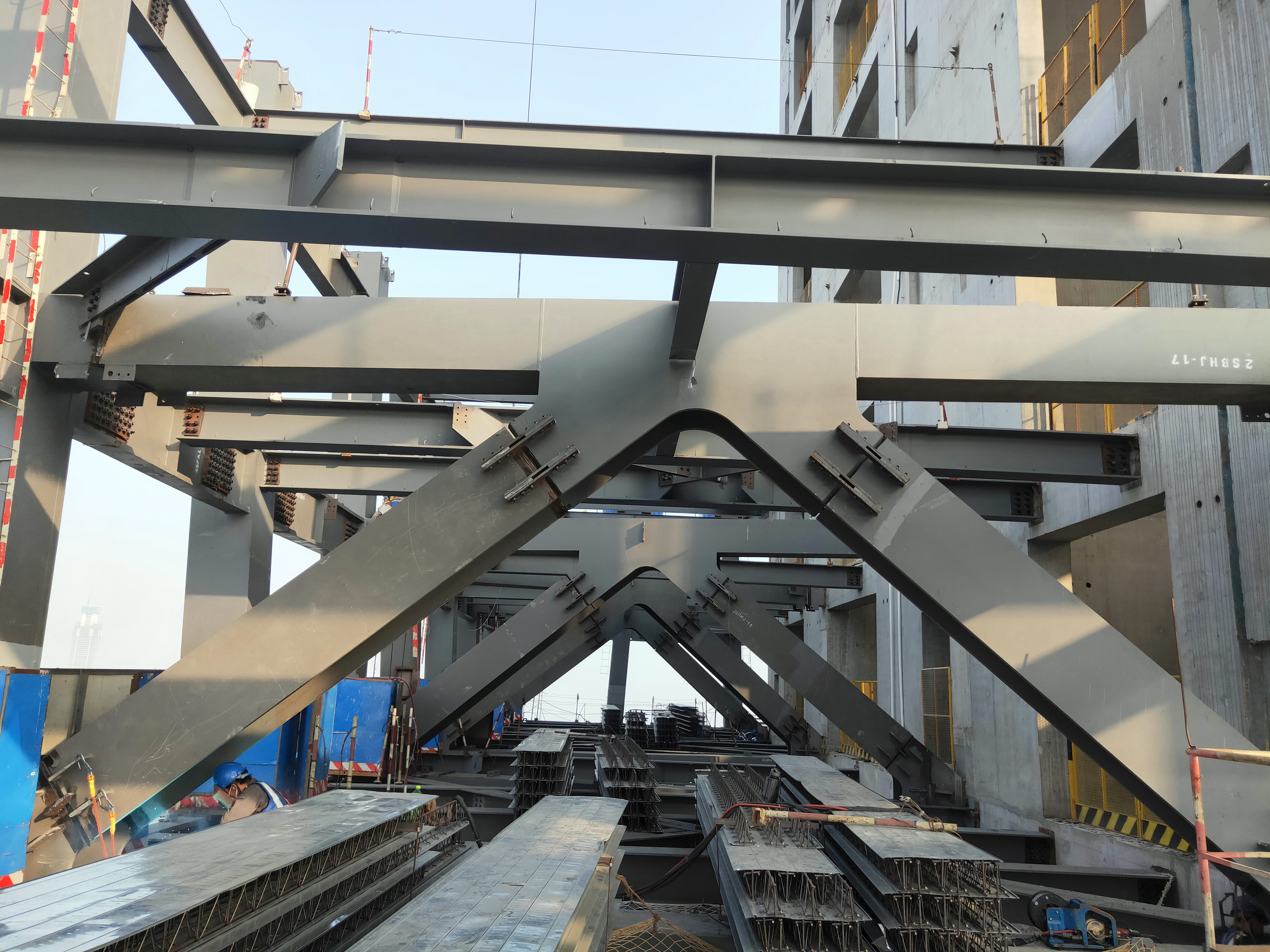 2019年11月10日,項(xiàng)目完成了第二個(gè)44層伸臂桁架層節(jié)點(diǎn);