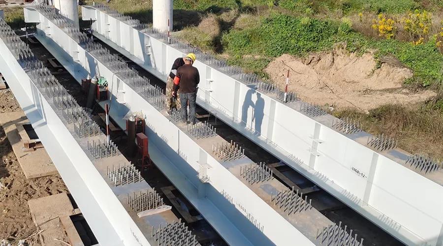 徽州大道南延(廬江段)一標(biāo)鋼結(jié)構(gòu)工程鋼板組合梁順利吊裝