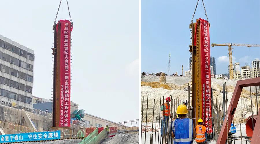 深業(yè)世紀(jì)山谷花園(一期)項(xiàng)目鋼柱首吊順利完成!