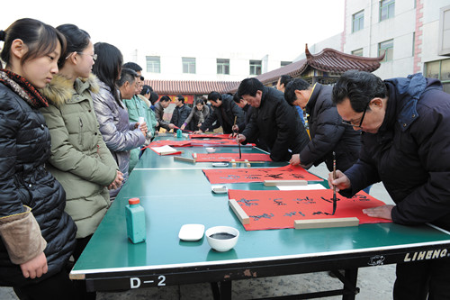 為弘揚(yáng)中華民族優(yōu)秀傳統(tǒng)文化,展示當(dāng)代中國楹聯(lián)書法的藝術(shù)魅力,推動(dòng)楹聯(lián)書法藝術(shù)的創(chuàng)新與繁榮,營(yíng)造歡樂祥和的馬年春節(jié)氛圍。元月16日,巢湖市文化宮組織本市8名書法家到富煌集團(tuán)為職工現(xiàn)場(chǎng)書寫春聯(lián),受到了廣大職工的歡迎和一致好評(píng)。