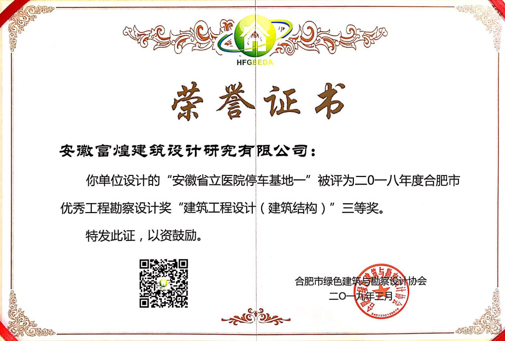 - 二〇一八年度合肥市優(yōu)秀工程勘察設(shè)計(jì)獎(jiǎng)建筑工程設(shè)計(jì)(建筑結(jié)構(gòu))三等獎(jiǎng)”