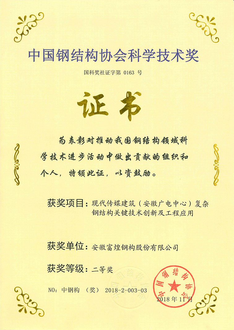 - 2018中國(guó)鋼結(jié)構(gòu)協(xié)會(huì)科學(xué)技術(shù)二等獎(jiǎng)